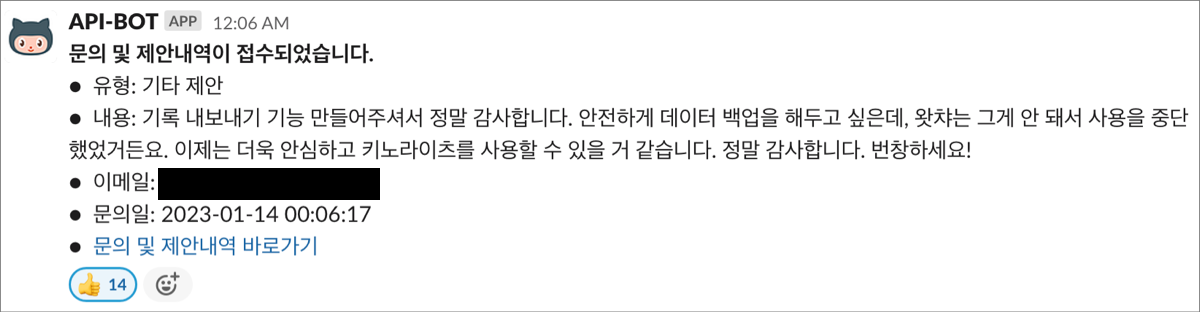 기능을 론칭하고 홍보가 거의 없었음에도 고객 피드백이 바로 들어왔다. 제품을 만드는 사람은 제품을 사용하는 실제 고객들의 긍정적인 피드백 하나하나가 정말 큰 힘이 된다.