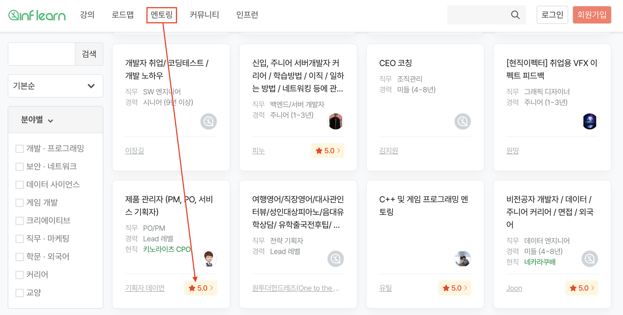 가끔씩 인프런을 통해 PM/기획자/초기 창업자 대상으로 멘토링을 진행한다. 이번주에는 개발자에서 기획자로 직무 변경을 준비하는 친구의 멘토링을 진행했는데 에너지가 넘치는 친구여서 멘토링을 하면서도 즐겁고 유쾌했다. 밝은 친구를 만나면 긍정의 에너지가 전달된다. 멘토링도 어느새 32회나 진행했다.
