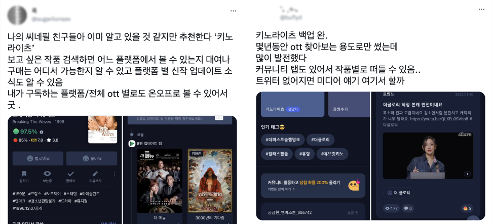 - 키노라이츠에 리뷰가 있는지 잘 인지하지 못한 유저들이 있다.